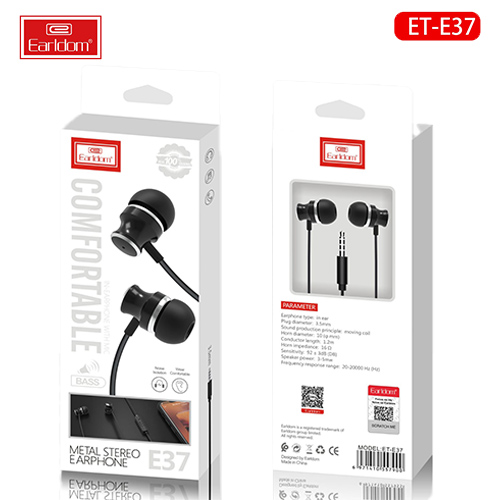 سماعة أذن سلكية EARLDOM ET-E37 بموصل 3.5 ملم – جودة صوت Hi-Fi، ميكروفون عالي النقاء، تصميم مريح ومتين